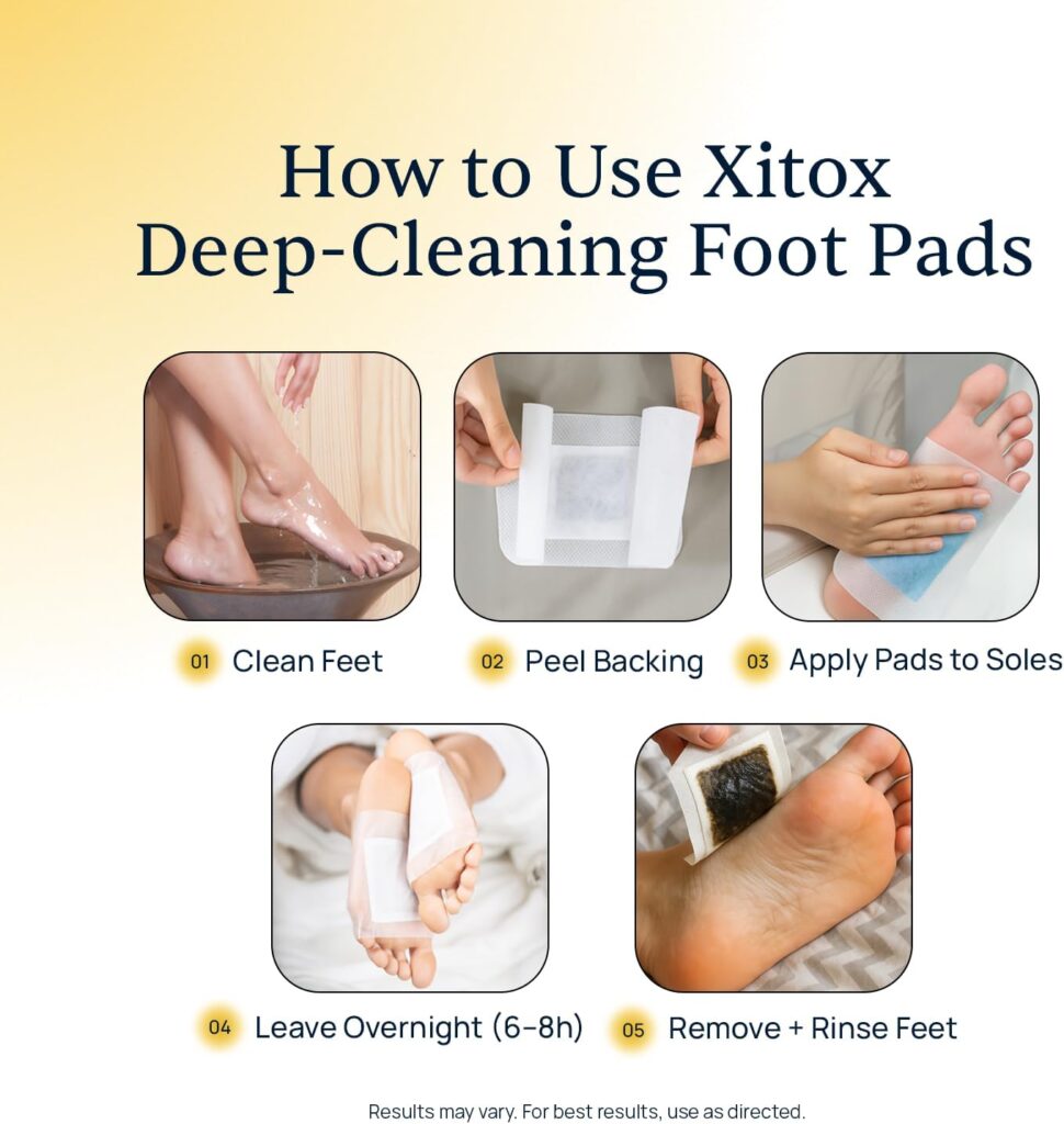 ✅ Pain Relief: Xitox foot pads are designed to reduce aches and pains in your feet and joints. The pads contain ingredients that have anti-inflammatory properties, providing relief from discomfort and improving your overall mobility.